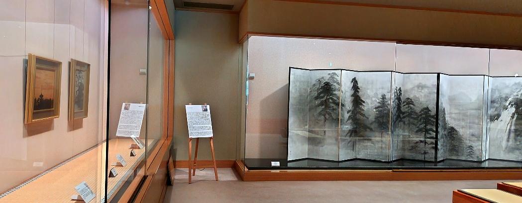 誰もが一度は描いたことのある風景画 それぞれの画家が描いた作品は、いにしえから変わらない風景、歴史の中で消えてしまった風景など様々です。 画家の脳裏で創造され再構成された作品を展覧いたします。 1975 年6 月、平山は訪中代表団に参加し古都長安のあった西安を訪ねました。その時のスケッチを元に制作された作品のうちの一点です。 画面一面に幻想的な平山ブルーと言われる群青と金を使うことによって往時の繁栄が想像されます。 平山は、現地で出会った風景から、創造をふくらませこの作品を描きました。 偶然この作品の製作中に訪ねた駒形は、青い色を何回も重ね塗りする平山の熱量に驚きました。